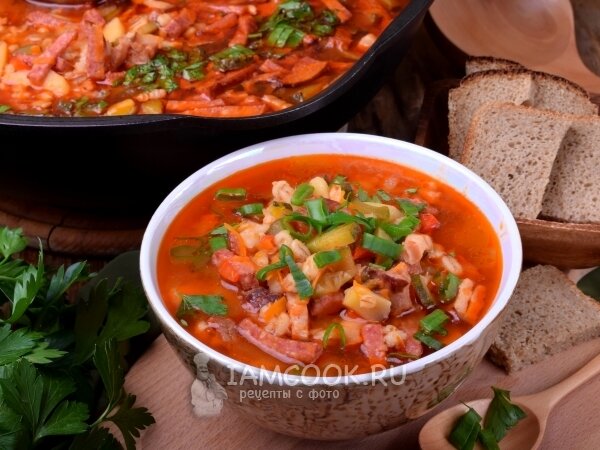 Рассольник с копченостями