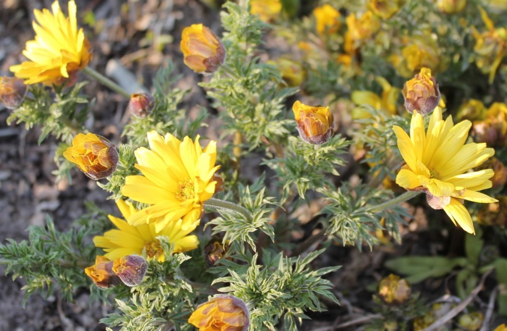 - Адонис весенний (Adonis vernalis) – ранний цветок, предпочитающий солнечные участки, расцветающий в Подмосковье и на юге России.