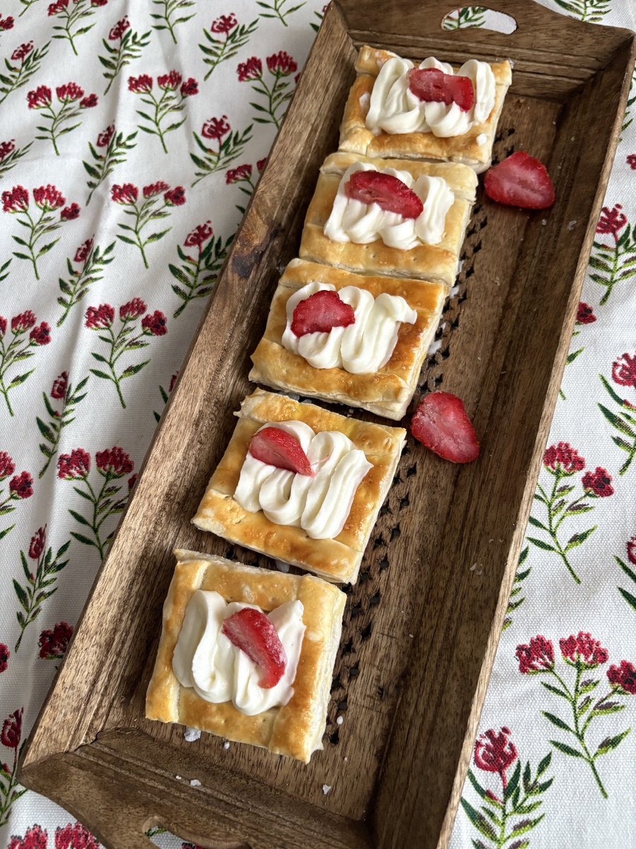Когда слойки остынут, украшаем их кремом и ягодами или посыпкой. Эти стильные слойки не только привлекут внимание, но и порадуют своим вкусом!
