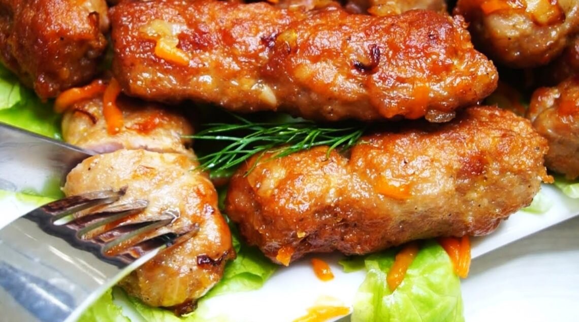 Формируем котлеты, придавая им вытянутую форму, как у люля-кебаба. В середину каждой заготовки помещается пластик шпика, что добавит сочности и насыщенного вкуса готовому блюду.