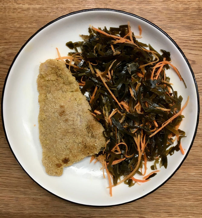Морковь желательно использовать длинную и крупную. Натрите её на терке и соедините с остывшей ламинарией. Пусть салат наберется вкуса, при необходимости приправьте его солью и добавьте немного масла перед подачей.