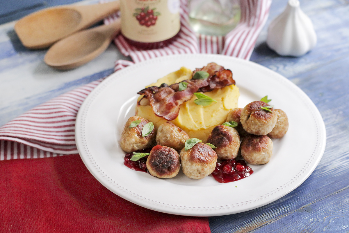Датские фрикадельки стали настоящим кумиром среди гурманов во всей Скандинавии. Каждая хозяйка интерпретирует этот классический рецепт по-своему, но по-настоящему популярным остается вариант с брусничным соусом и пюре. В нашей версии мы слегка усовершенствовали традиционное блюдо, добавив в картофель тыкву. Готовы попробовать?