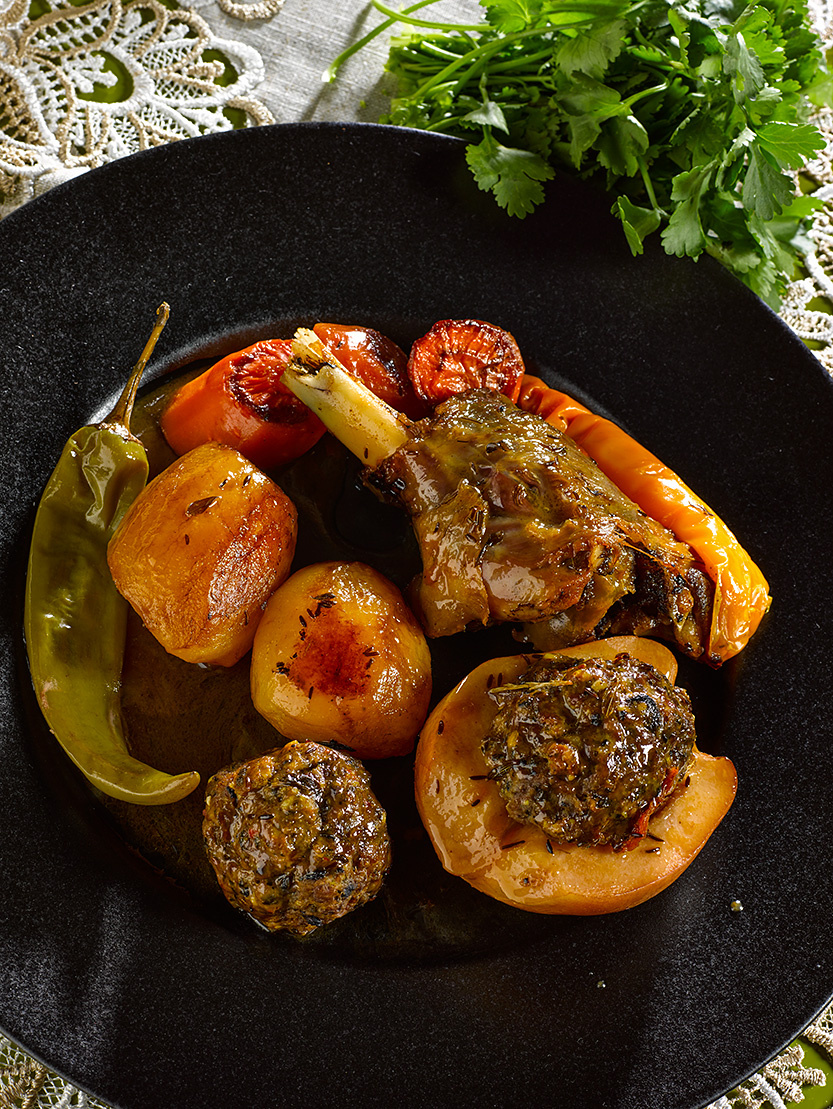 Почему бы не изменить фарш, чтобы он лучше сочетался с кисло-сладким вкусом айвы? Простой прием: добавить фисташки и изюм к мясу. Этот неожиданный дуэт свайвает вкусовые горизонты. Мяту и базилик порадуют свежестью, а пара щепоток хлопьев острого перца добавит остроты. Чтобы подчеркнуть вкус, следует использовать немного тертого пармезана и кислинку сумаха, не забывая про соль.