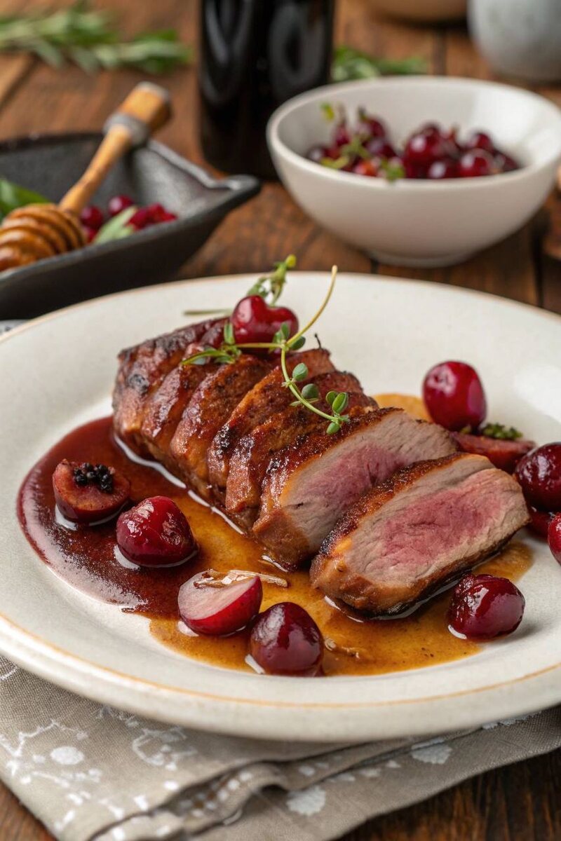 Нежное мясо, хрустящая корочка и насыщенный аромат, который невозможно забыть, делают утиное филе исключительным выбором для любого случая. Когда на столе появляется теплый вишнёвый соус и яркие овощи-гриль, этот ужин превращается в настоящий праздник.
