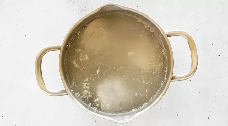 Чтобы начать, нужно взять куриные бедрышки и поместить их в большую кастрюлю, залив 2 литрами холодной воды. Установите на сильный огонь и дождитесь закипания. Во время кипения на поверхности образуется пена — её следует аккуратно убрать шумовкой. После того как вода закипит, уменьшите огонь до минимума и варите курицу на протяжении 30-40 минут. Когда время пройдет, извлеките бедра, отделите мясо от костей и нарежьте его, если требуется. Уберите курицу в отдельную миску, пока не понадобится снова.