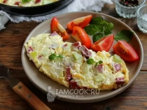 Омлет с кабачками и колбасой
