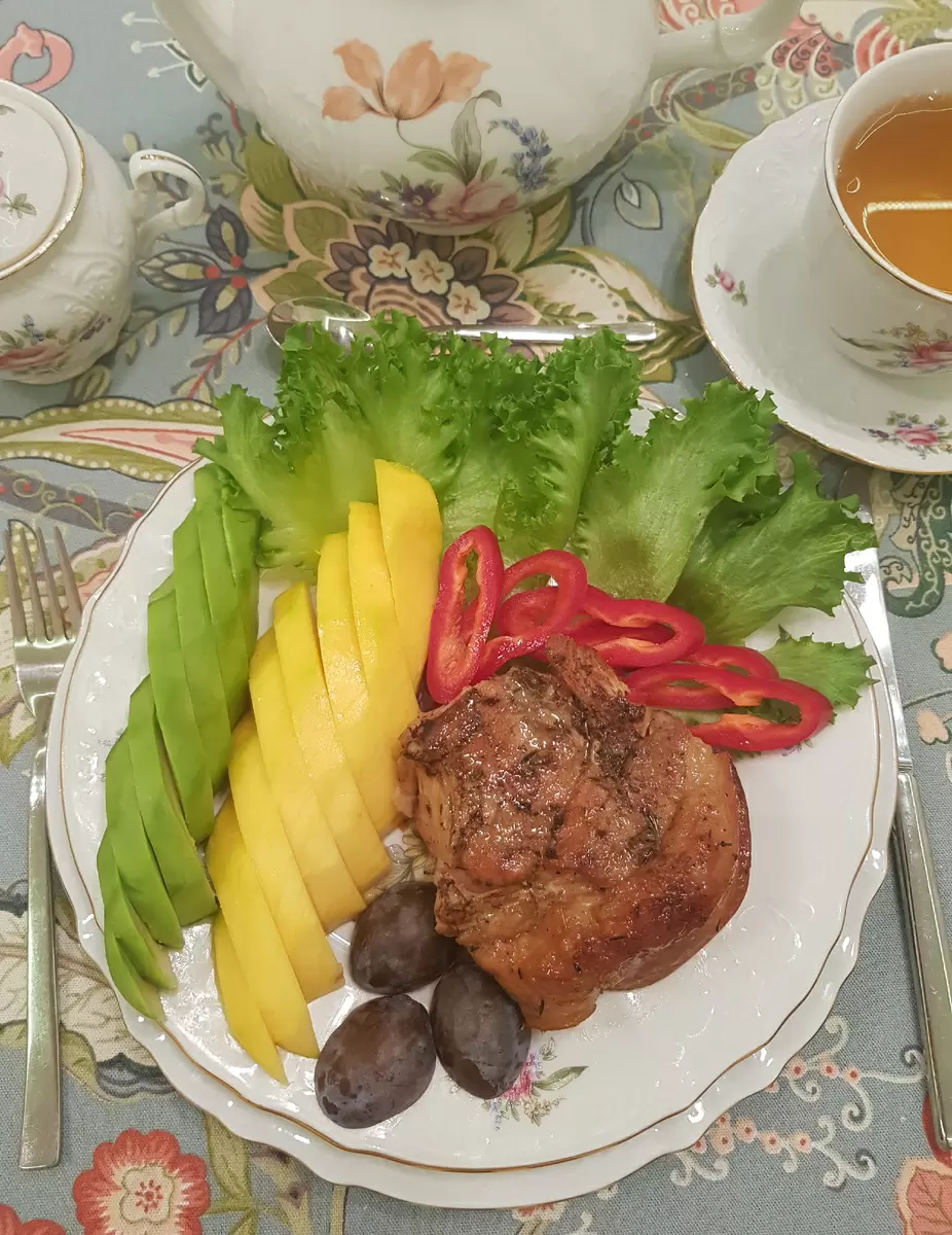 По окончании приготовления дать окороку немного отдохнуть под фольгой, прежде чем нарезать. Блюдо можно подавать с запеченными сливами и свежими овощами. Это кулинарное искусство порадует не только глаз, но и вкус, ведь сочетание фруктов и мяса подарит множество оттенков вкуса. Приятного аппетита!