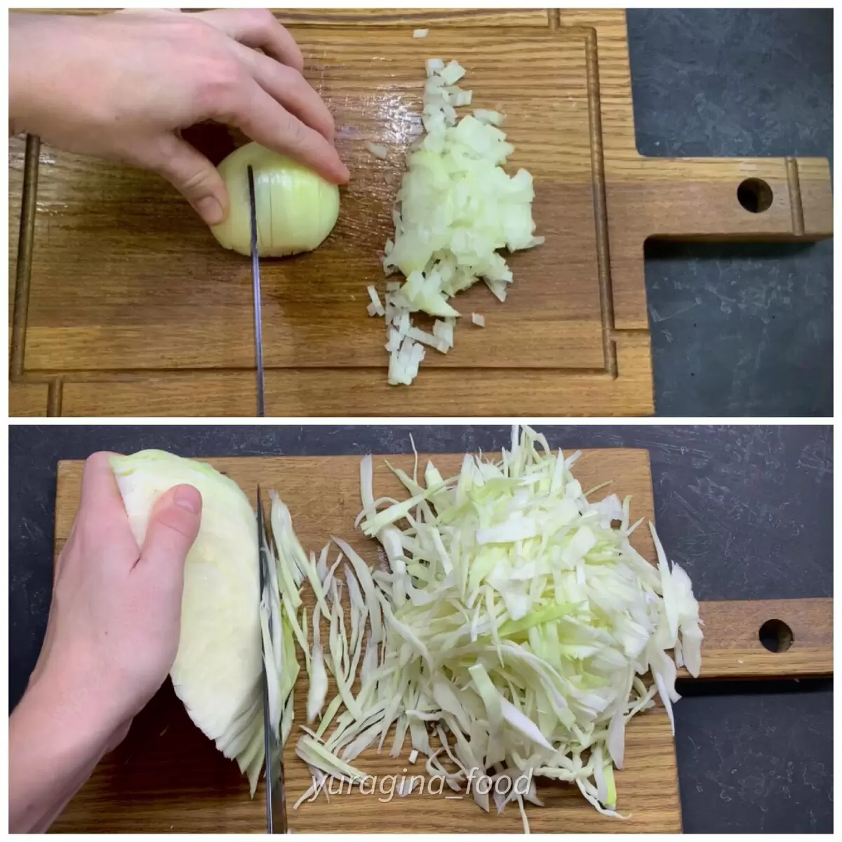 1. Мелко нарезать лук и нашинковать капусту.