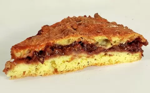 Тем временем можно заняться начинкой. Сливы слегка измельчить при помощи блендера, добавить остальные ингредиенты и хорошо перемешать. После того как тесто в холодильнике охладилось, равномерно распределить его по дну формы диаметром 20 см. Вылить начинку на тесто, а сверху натереть замороженное тесто на крупной терке.