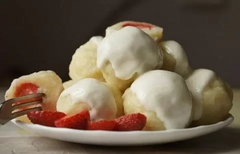 Начните с того, что в творог добавьте сахар, ванилин, соль и яйцо. Тщательно перемешайте все ингредиенты, чтобы получилась однородная масса.Постепенно добавляйте муку, продолжая перемешивать тесто до тех пор, пока оно не впитает все сухие ингредиенты. Тесто должно стать эластичным и нежным.На посыпанной мукой поверхности раскатайте тесто в колбаску диаметром около 3 см. Затем нарежьте ее на кусочки толщиной примерно 1,5 см, из которых получатся основные части клецок.Каждый кусочек теста раскатайте в лепешечку, добавьте в центр выбранную начинку из фруктов и защипите края, придавая им форму полумесяца. Затем соедините концы и аккуратно раскатайте клецку между ладонями, чтобы она приобрела форму шара. Обваляйте полученные клецки в муке и выложите на доску, обсыпанную мукой.В кипящую, подсоленную воду аккуратно опустите клецки и варите до тех пор, пока они не всплывут на поверхность — это займет около 7-8 минут. Вытяните клецки и посыпьте сахаром, полив растопленным сливочным маслом по вкусу.Эти творожные клецки с фруктовой начинкой идеально подойдут как для блюда на завтрак, так и для десерта. Их легко приготовить, а результат приятно удивит!