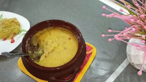Готовую массу помещают в смазанную растительным маслом жаропрочную посуду или горшочек. Запекается удобно в духовке при температуре 180-200°C до полной готовности, что займёт около 40-60 минут. Для хрустящей корочки желательно открыть крышку за 15 минут до окончания готовки.