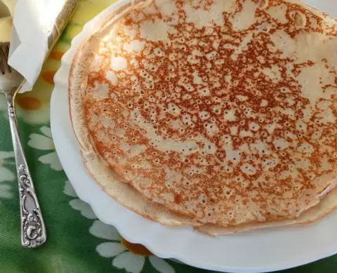 Из предложенного количества ингредиентов получается около 10 блинов (при диаметре сковороды 28 см). Эти блинчики не только простые в приготовлении, но и чрезвычайно вкусные!