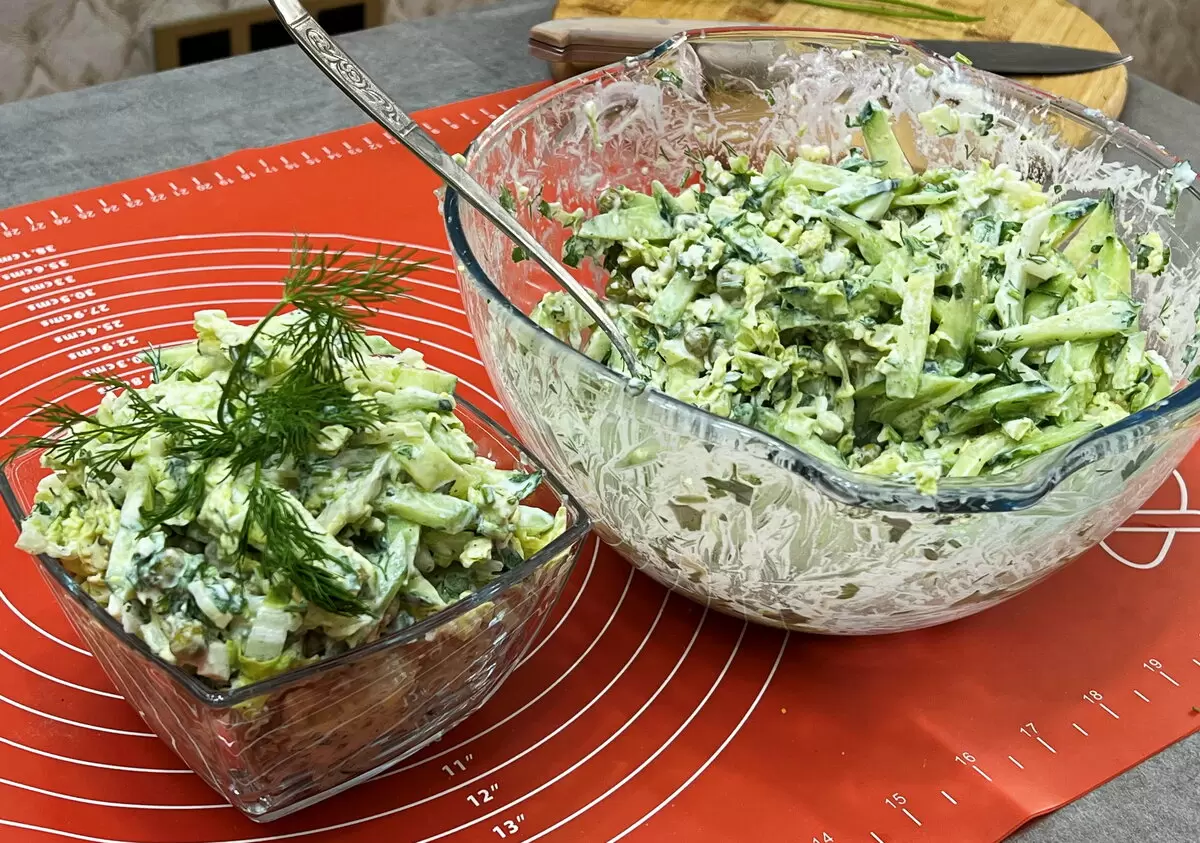 Чтобы создать этот кулинарный шедевр, перво-наперво рекомендуется отварить яйца. Пока они готовятся, можно приступать к нарезке остальных ингредиентов. Огурцы, пекинская капуста и свежая зелень нарезаются мелкими кубиками. Затем добавляется консервированный горошек, который придаст салату необходимую сладость и текстуру. В завершение, отварные яйца нарезают кубиками и смешивают со всеми остальными компонентами.