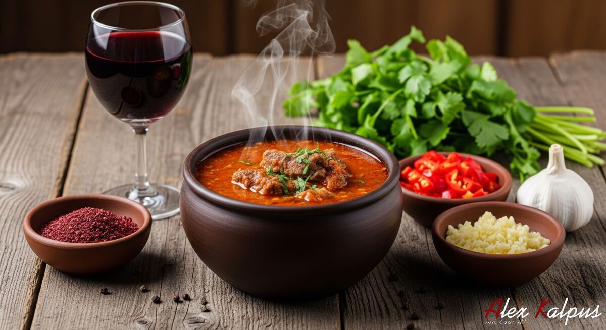 Пошаговый процесс включает в себя несколько ключевых этапов. Сначала мясо нарезается и варится 1,5 часа, затем лук тушится до золотистого цвета. После этого мясо соединяется с тушеным луком и добавляются помидоры. Далее следует влить бульон и дать блюду настояться, перед подачей добавить рубленую кинзу и специи.
