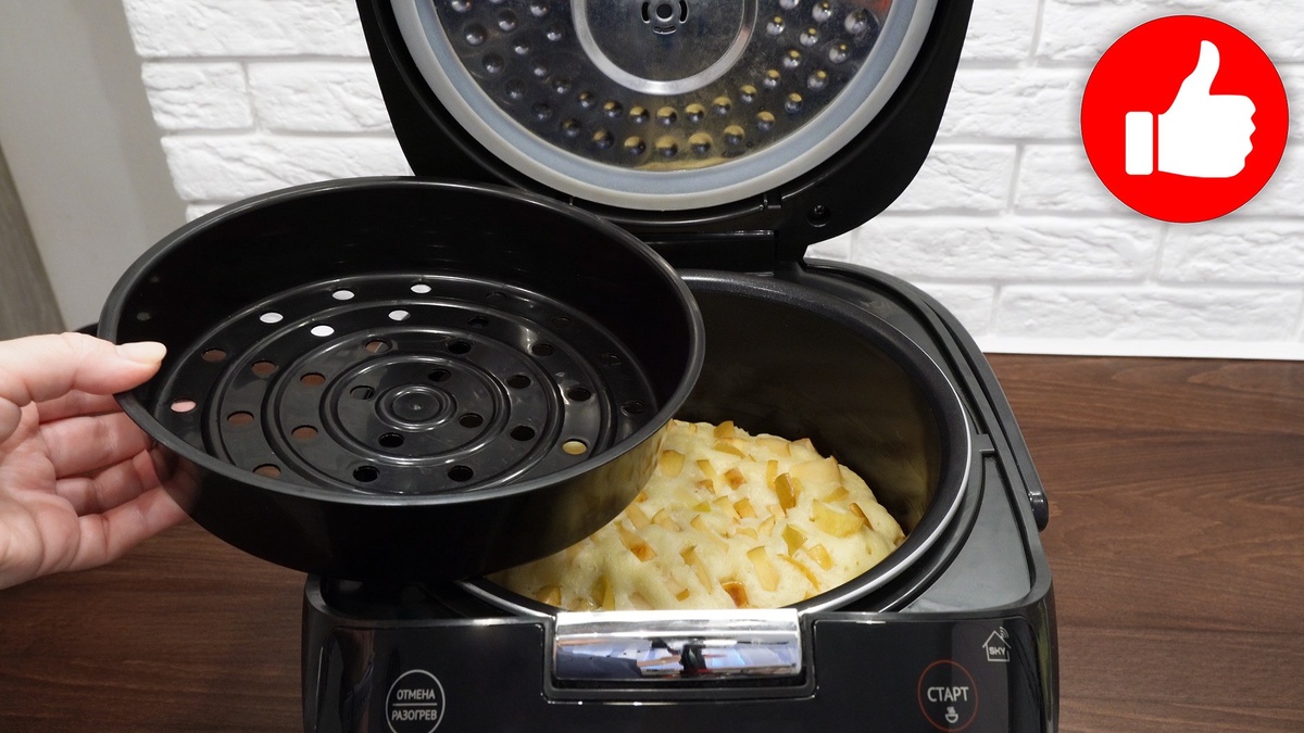 Чашу мультиварки следует смазать маслом, а сверху выложить подготовленное тесто. Яблоки нарезать и разместить в нем хаотично. Выбрать режим «Мультиповар» на 130°C и установить время на 60 минут, или использовать режим «Выпечка» на 45 минут. По завершении программы десерт будет готов!