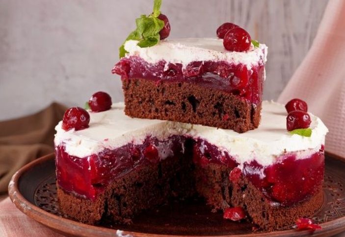 Этот невероятный пирог-торт с вишней становится настоящей звездой на любом праздничном столе. Нежный шоколадный корж служит отличной основой, а аппетитный слой вишнёвого киселя дополняет его невероятным вкусом. Завершает композицию воздушный сливочный крем, который буквально тает во рту, созданный из сливочного сыра, взбитых сливок, сахарной пудры и щепотки ванили.