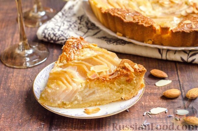 - Тарт с грушами и франжипаном: это шикарный пирог со сладкими грушами и воздушным миндальным кремом.