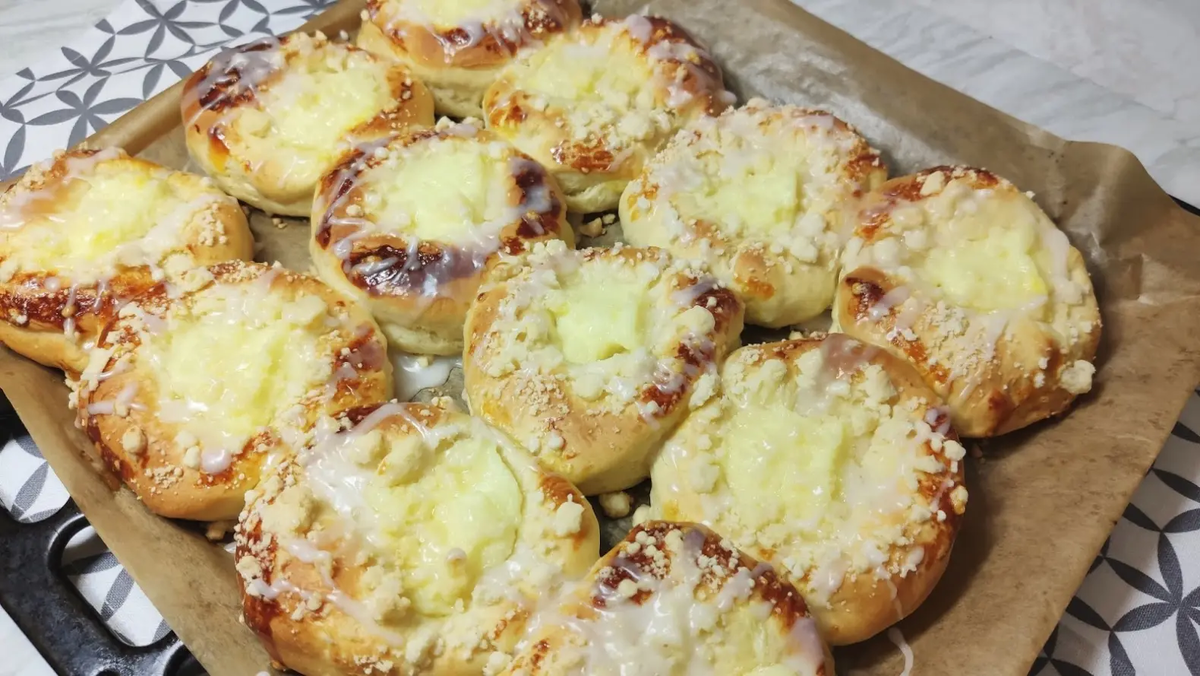Вас когда-нибудь удивляли новые десерты? Эти ватрушки с поджаренной посыпкой и сахарной глазурью точно привлекут внимание любителей сладкого! Идеально подойдут к вечернему чаю. Указанные ингредиенты рассчитаны на 12 штук вкуснейших ватрушек, а стакан, который используется в рецепте, объемом 250 мл, сообщает Дзен-канал "Кулинарные записки обо всём".