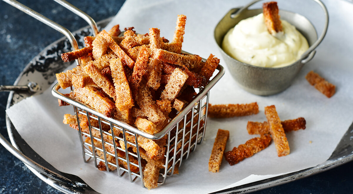 Настоящий хит — их насыщенный аромат, в сочетании с хрустящей текстурой ржаного хлеба и ярким вкусом чеснока. Эти сухарики легко готовятся из подзасохшего хлеба, который, в противном случае, мог бы оказаться на помойке.