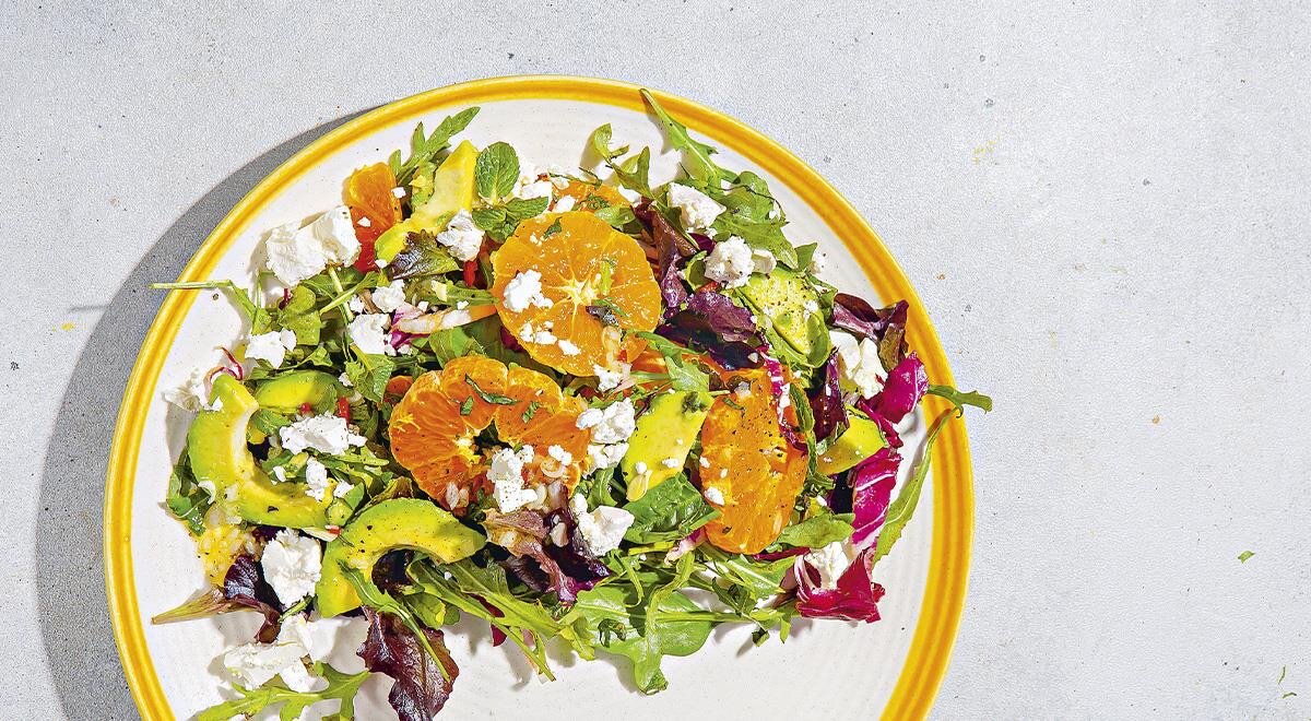 Основой салата служат нежные ломтики авокадо, которые отлично сочетаются с кислым вкусом мандаринов и хрустом свежих салатных листьев. Чтобы сделать салат еще более притягательным, выбирайте разнообразные салаты, создавая красочные комбинации. Не забывайте добавить острые кубики перца чили, солоноватую фету и оригинальную заправку на основе апельсинового сока.