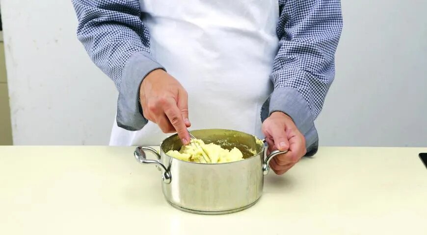 Сначала поступим следующим образом: отварите картофель в подсоленной воде до полной готовности. После этого аккуратно слейте воду и дайте картофелю немного обсохнуть. Разомните его в пюре, добавив яйцо и немного сливочного масла для насыщенного вкуса. Для получения нужной консистенции постепенно влейте теплое молоко, пока не достигнете густого пюре. Далее тщательно взбейте массу венчиком и дайте немного остыть.