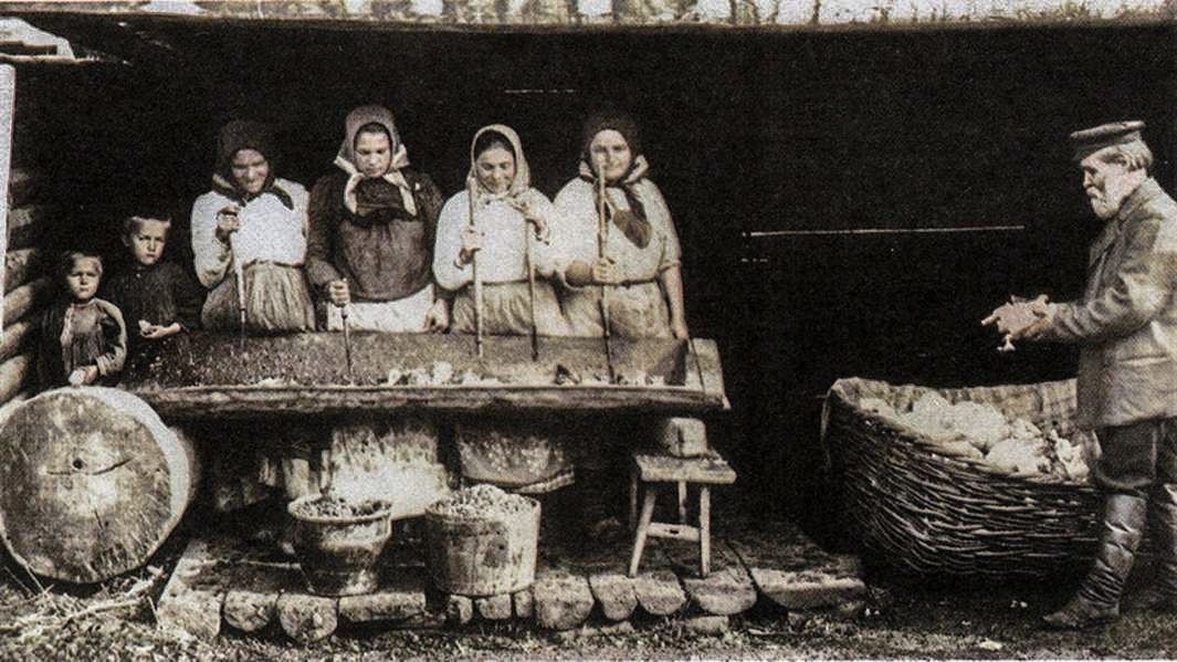 Сентябрьское солнце уже садится за горизонтом, а воздух наполняется запахом свежесрезанной капусты и предвестниками зимы. На исторической фотографии, скорее всего, запечатлён День Сергия Капустника, который отмечается 8 октября, видна группа людей, работающих во дворе. Кажется, что они замерли для камери, но на самом деле на их лицах отражается энергия и трудолюбие.