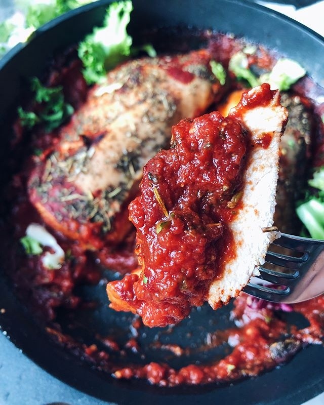 Начните с создания небольшого кармашка в грудке, аккуратно надрезав ее вдоль, но не до конца. Внутрь поместите кусочек сыра, добавьте соль и перец по вкусу, а затем слегка смажьте оливковым маслом. После этого выложите грудки в форму для запекания и залейте их рублеными томатами, добавив специи. Запекайте в разогретой до 180°С духовке в течение 30-40 минут. Подавайте это блюдо, полив подливкой и украсив свежей зеленью!