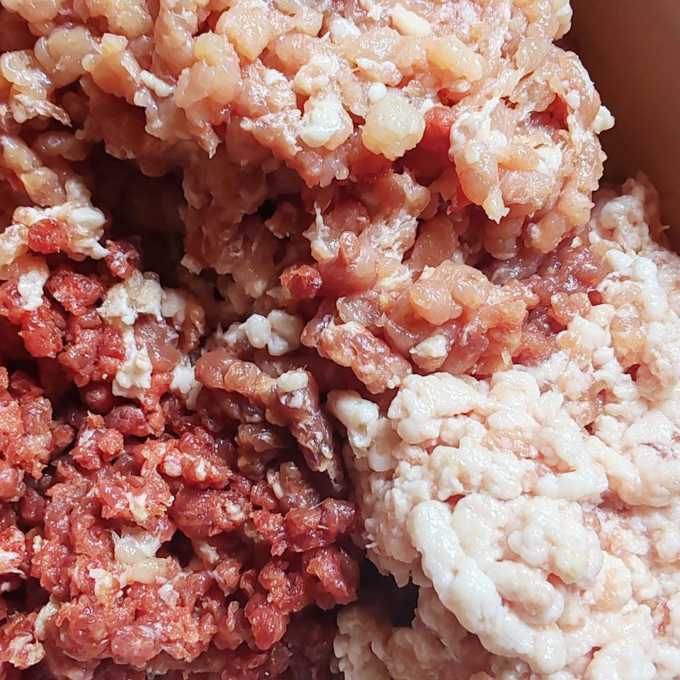 Шаг 1: Начинаем с подготовки фарша. Смешиваем свинину и говядину, добавляем свиное сало для сочности. Лук и чеснок также прокручиваем через мясорубку или мелко нарезаем. Сразу солим по вкусу.