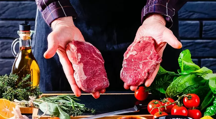 - Для стейка используются только лучшие куски говядины, предпочтительно мраморной, которая обеспечивает неповторимый вкус и текстуру. Порода Black Angus считается идеальной благодаря своим жировым прослойкам.