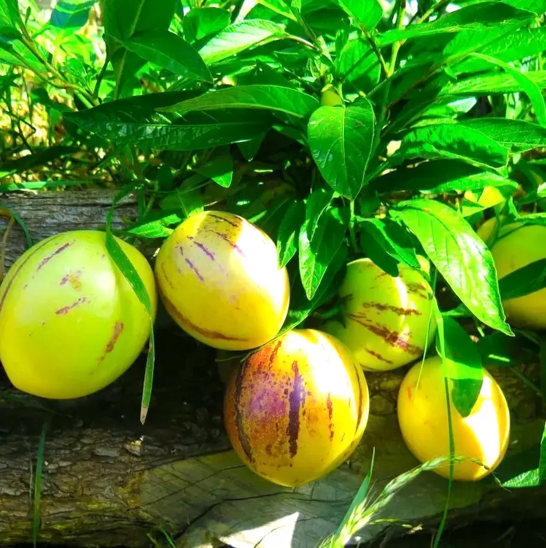 Пепино родом из Южной Америки, а именно с Анд, где его культивируют уже многие века. Внешний вид плода напоминает небольшую грушу или дыню, но с вытянутой формой и размером от 10 до 20 сантиметров в длину. Его тонкая, гладкая и съедобная кожура варьируется от бледно-желтого до кремового с фиолетовыми и зеленными прожилками, которые становятся более выраженными по мере вызревания.