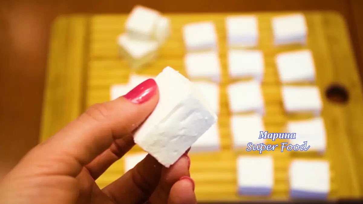 Когда зефир готов, проверьте его на готовность: масса должна быть упругой и не липнуть к пальцам. Обсыпьте поверхность смесью сахарной пудры и крахмала перед тем, как нарезать на кусочки. Не забудьте обвалять их в сахарной пудре, чтобы они не слиплись.