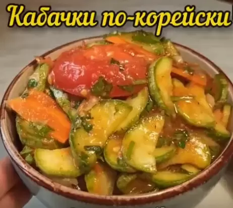 Теперь сочетайте подготовленные кабачки со специями, чесноком и горячими овощами. Если хотите, добавьте нарезанную зелень и аккуратно перемешайте, чтобы все ингредиенты хорошо соединились. Это блюдо прекрасно дополнит любое застолье и станет настоящим открытием для любителей восточной кухни.