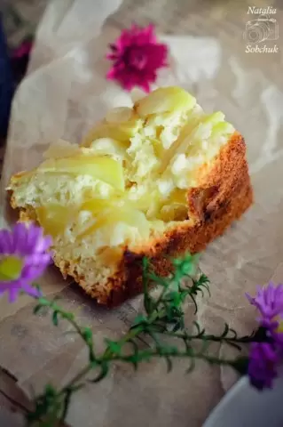 Форму для выпекания следует застелить пергаментом и выложить половину теста, сверху уложить нарезанные дольки яблок. Затем равномерно распределить оставшееся тесто и красиво разместить оставшиеся дольки яблок по кругу. Если хочется, можно посыпать пирог миндальными лепестками. Духовка должна быть разогрета до 180 градусов — выпекать шарлотку нужно около 50 минут. Проверить готовность можно деревянной палочкой: если она выходит сухой, значит, пирог готов. Достать из духовки, дать немного остыть и аккуратно освободить от формы. Устало охладите на решетке.