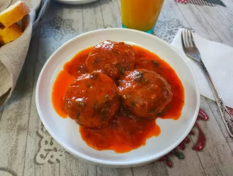 Как только гречаники подрумянятся, их нужно залить приготовленной томатной подливой. Дождаться закипания, уменьшить огонь, накрыть крышкой и готовить еще 15 минут, перевернув на другую сторону. По завершении выключить плиту и оставить под крышкой еще на 5 минут.