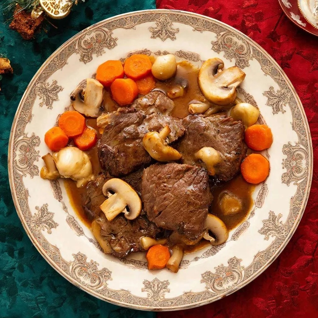 Погрузитесь в гастрономическую глубину Франции с беф-бургиньоном — традиционным рагу из говядины, медленно тушеного в красном вине, с добавлением лука, моркови и грибов. Это блюдо является истинным символом Бургундии — региона, который славится не только своими винами, но и кулинарными шедеврами. Когда-то оно готовилось из жестких кусков мяса, позволяя им стать мягкими и сочными благодаря длительному томлению в вине и бульоне. Результат — невероятно насыщенный вкус и нежная текстура, которые не оставят равнодушными ни одного гурмана.