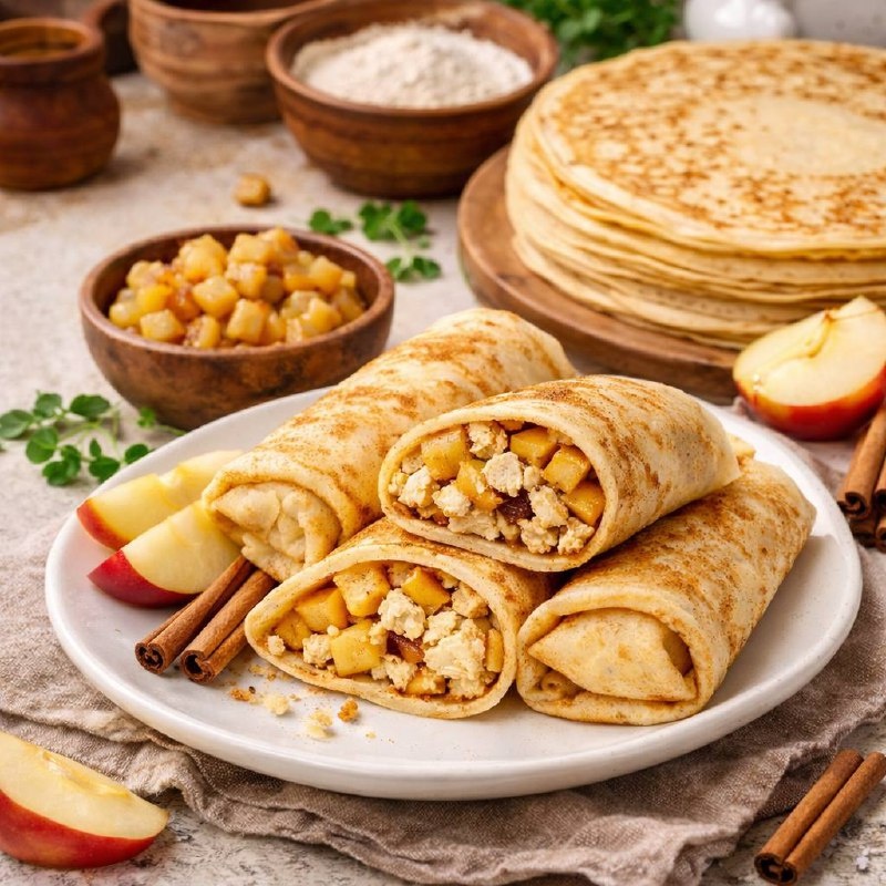 Чтобы сделать блинчики еще более аппетитными, рекомендуется приготовить сладкую начинку из яблок с тофу. Вот что вам понадобится: