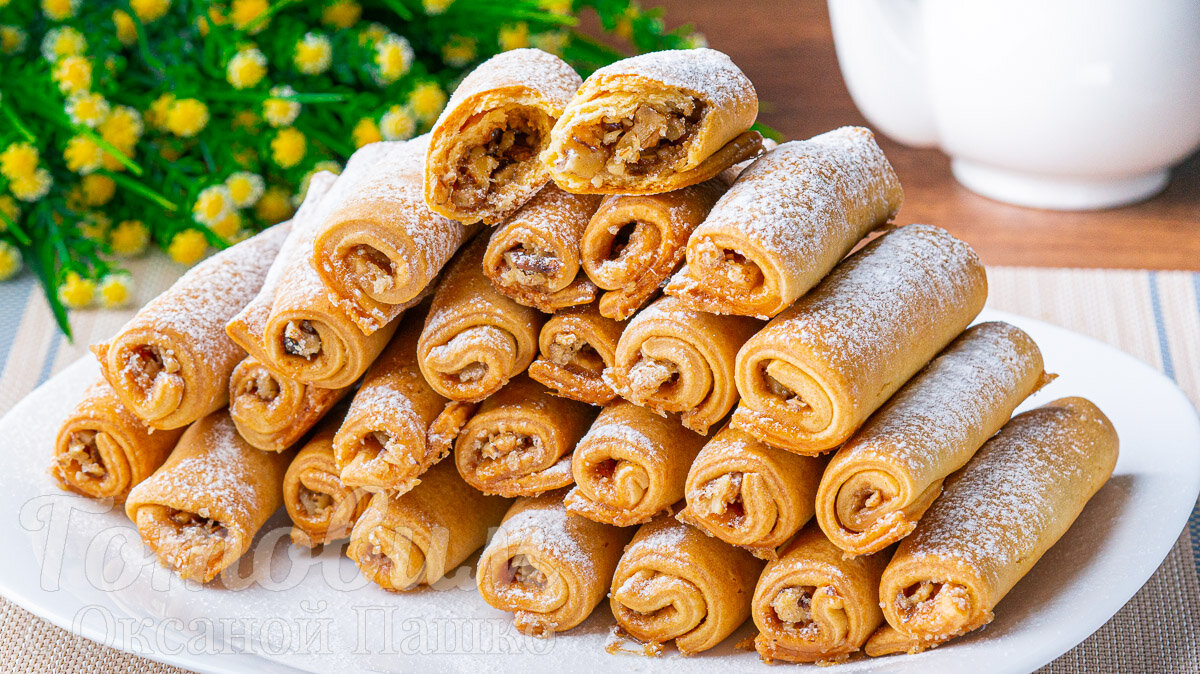 10. По готовности посыпать сахарной пудрой и подать на стол. Эти ароматные трубочки с орехами совершенно не оставят равнодушными ваших близких.